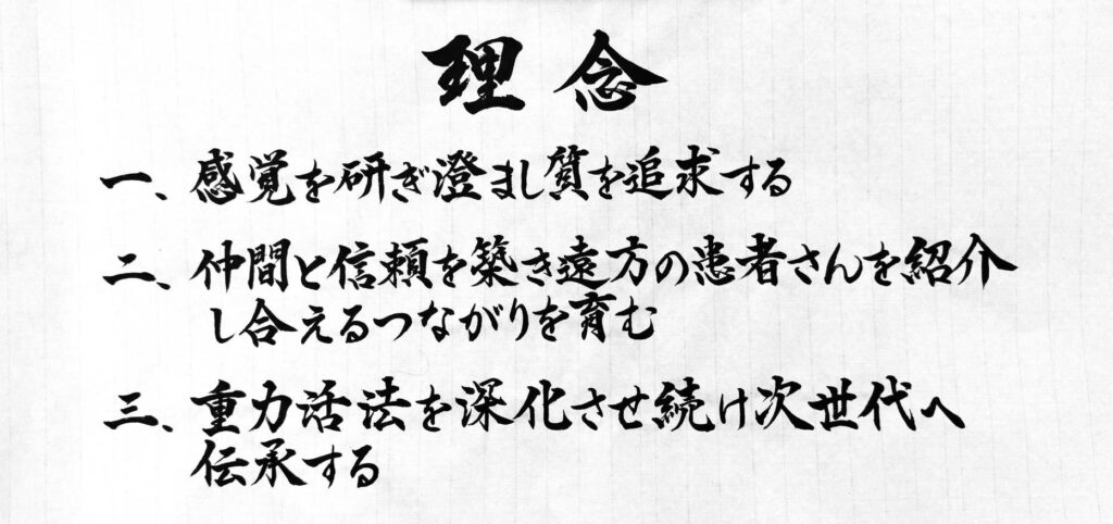 そこで古武術を通して、力では無く重力を活かした身体感覚を学び、施術家として日々の臨床で検証を重ねていき、「施術に重力をどう活かすか」ということを体系化しました。